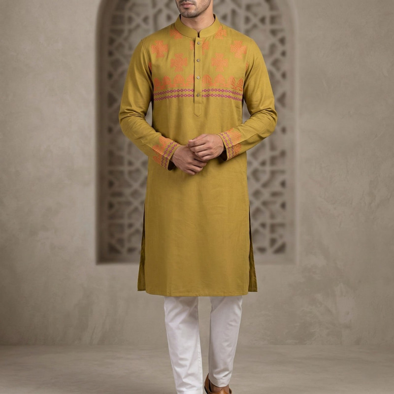 * 4. মান নিয়ন্ত্রিত (QC) ফিনিশিং: প্রতিটি পাঞ্জাবি নিখুঁতভাবে পরীক্ষা করা হয়, যা প্রতিটি ডিজাইনকে দেয় একদম নিখুঁত সমাপ্তি।